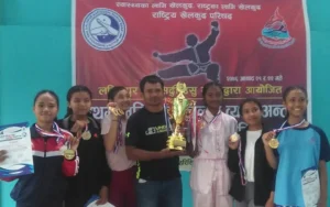 Our team, guided by their dedicated coach, brought home the trophy, making us proud.